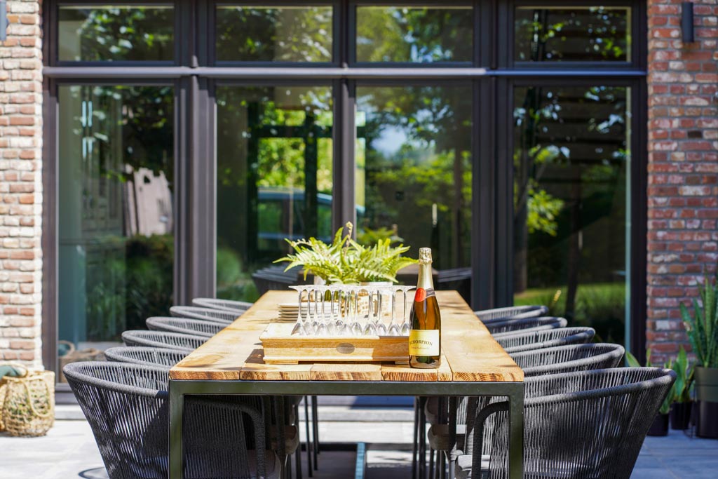 Napraten over de gemaakte herinneringen? Dat kan op het ruime terras in de tuin, in de lounge, aan de grote tafel in de woonkamer of in de cosy zithoek aan de haard.