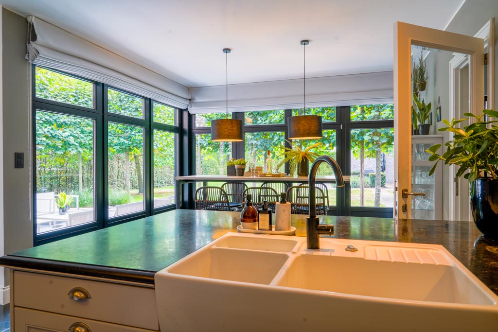 Word je pas echt wakker na een heerlijke espresso? Zet je op een barkruk in de keuken met een krant en geniet van het uitzicht op het groen terwijl de wereld ontwaakt.